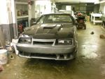 It is a a 99=+ saleen lower air dam, the head lamps are chevy projector one piece, Is it too much?? I've been getting mixed results. People love it or they hate it. I am planing on adding saleen side skirts and rear bumper cover. I want to see what it looks like dropped on black cobra rs, when I am done. I love Saleen and plan on doing an old school foxbody with newer saleen styling hues. If all else fails i have a boring old 86 front nose.-Joe